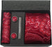 Um conjunto clássico de gravata, lenço e abotoaduras, feito em seda com design paisley floral. Ideal para homens que buscam sofisticação e estilo atemporal em qualquer ocasião formal.