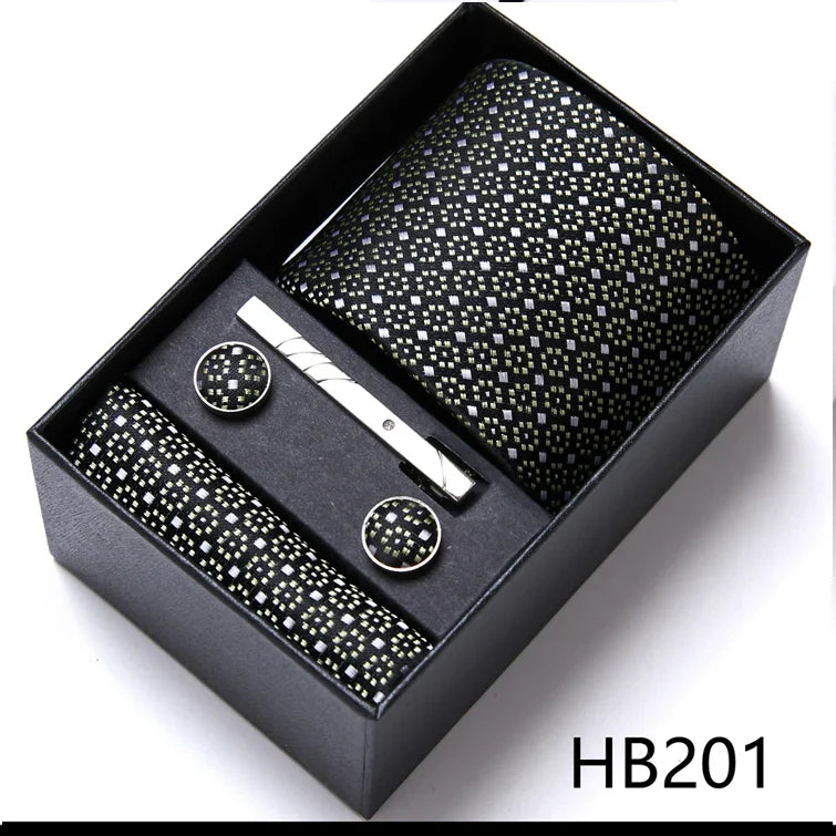 Eleve seu estilo com o Conjunto de Gravata de Seda Jacquard Preto e Ouro, uma peça luxuosa e texturizada que exala sofisticação para ocasiões especiais.