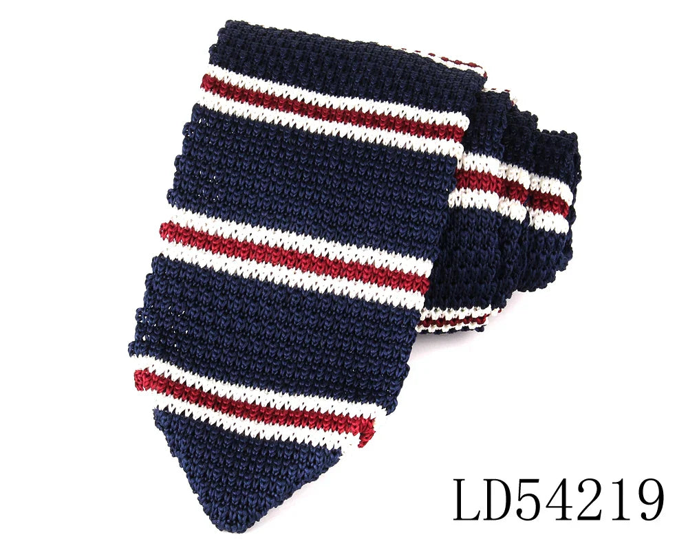 Aposte na elegância atemporal com a nossa gravata masculina de tricô slim, listrada em marinho, perfeita para um toque retrô e sofisticado em qualquer look.