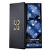 • Dimensões: A gravata possui uma largura versátil de aproximadamente 8 cm (na parte mais larga) e um comprimento de cerca de 145 cm, ideal para diversos tipos de nós e estaturas. O lenço de bolso, perfeito para complementar seu traje, tem dimensões de 24x24 cm.