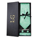 • Cor e Padrão: Em um sofisticado tom verde-azulado (teal green), adornada com o clássico padrão Paisley. O design intrincado e as cores ricas conferem um visual de distinção e bom gosto, complementado por um lenço de bolso coordenado.