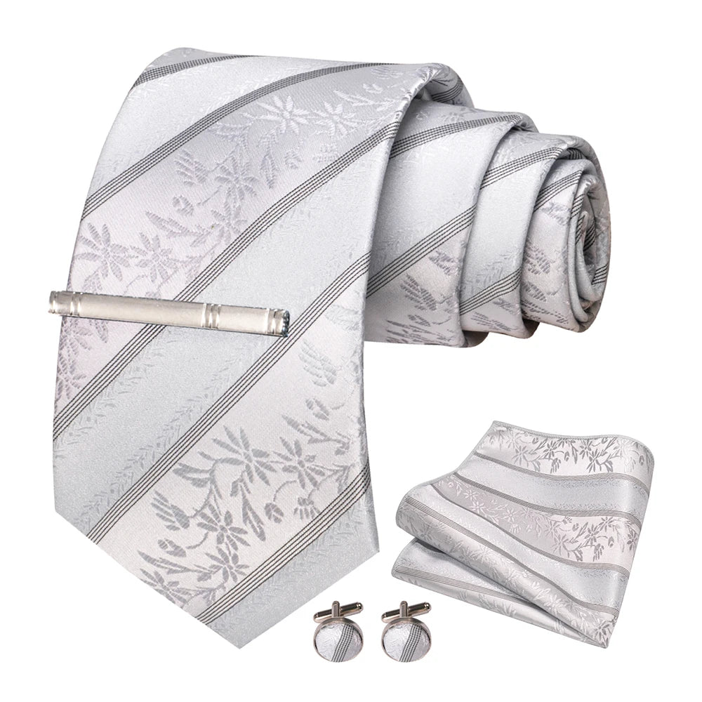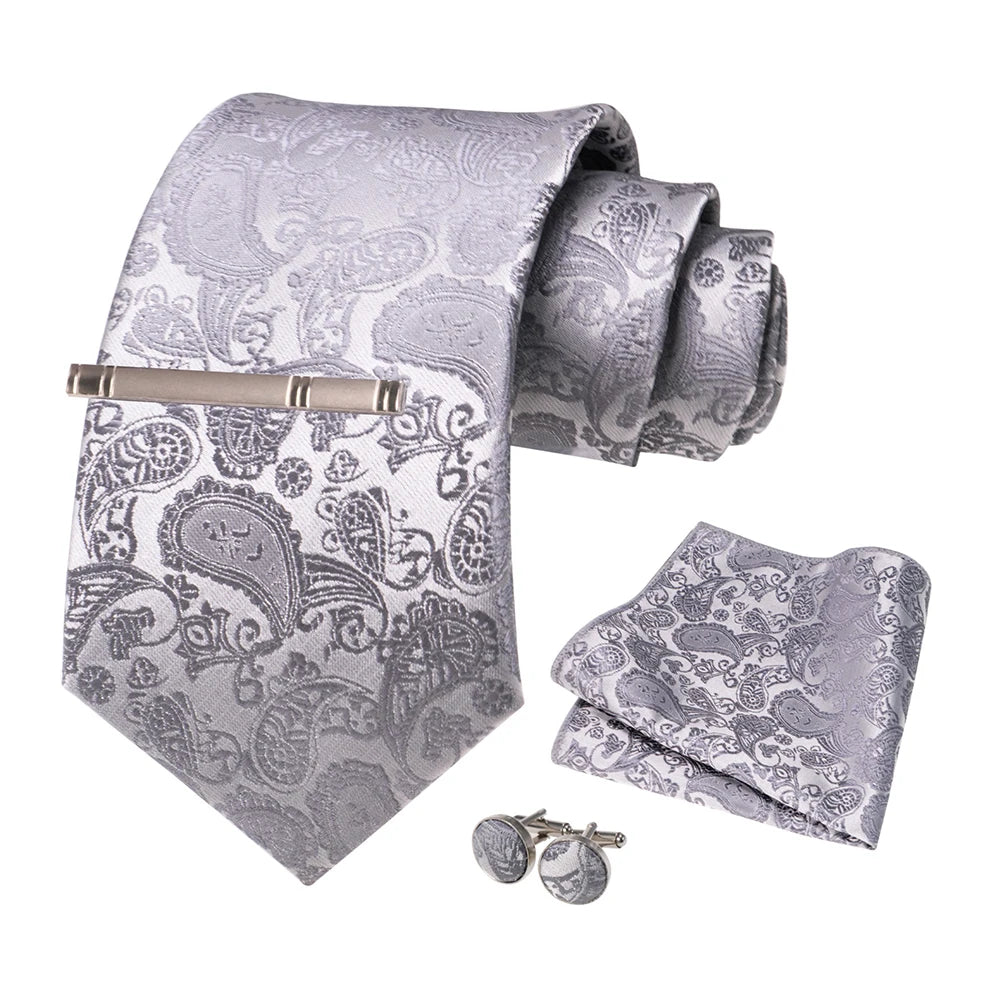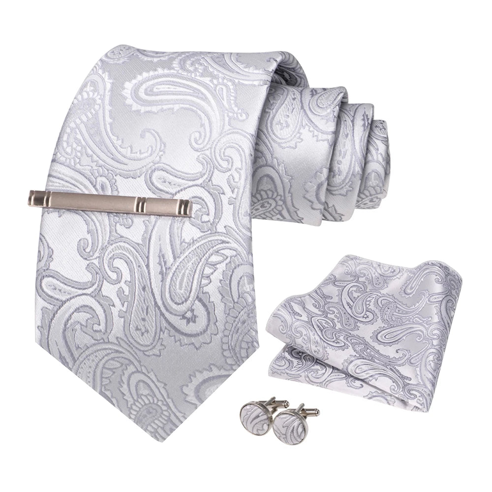• Cor e Padrão: Apresenta uma paleta sofisticada de branco, cinza e detalhes prateados, adornada com um padrão Paisley intrincado. Esta combinação cria um visual luxuoso e versátil, ideal para eventos de gala.